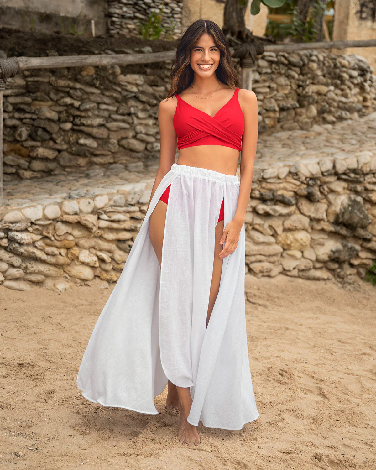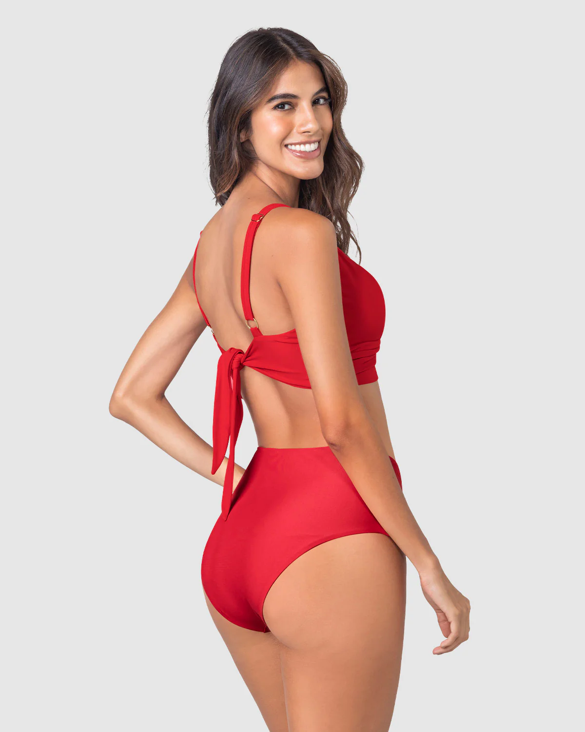 Un bikini para quienes buscan un equilibrio entre buen cubrimiento y usar dos piezas. Cuenta con copas fijas que le dan una modelación redondeada al busto y un escote en V que te hará lucir increíble junto con el detalle drapeado en el centro. Sus cargaderas son graduables, no removibles y los herrajes están elaboradas con procesos ecoamigables. Su calzón es de tiro alto para que se sienta cómodo, se vea favorecedor y se mantenga en su lugar sin importar cómo te muevas.